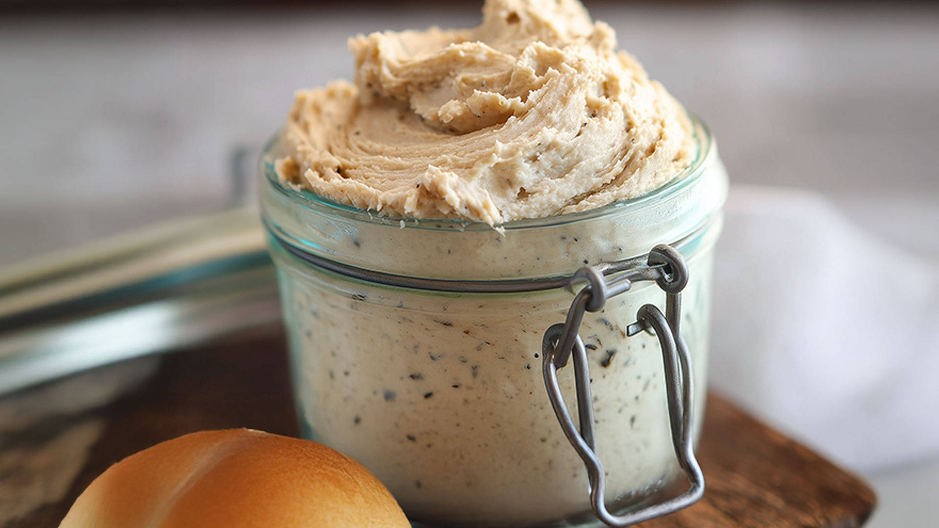In der Zwischenzeit die Butter bei mittlerer Hitze zerlassen und bräunen. Knoblauch schälen, fein reiben und zur braunen Butter geben. Zum Schluss mit einem Schuss Sojasauce abschmecken und über einem gesalzenen Eisbad erst abkühlen lassen und dann aufschlagen.