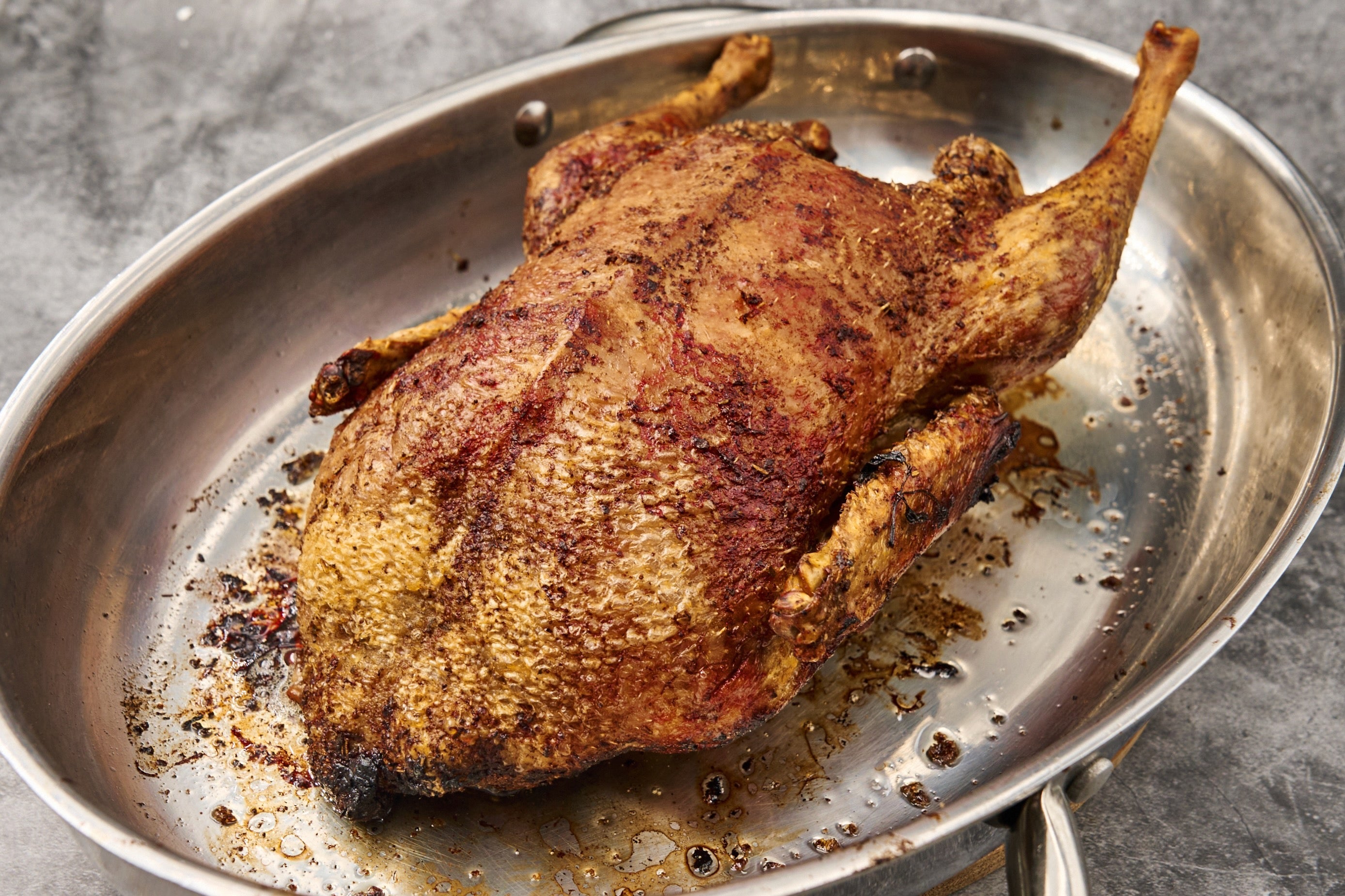 Ente aus dem Ofen nehmen, tranchieren und zusammen