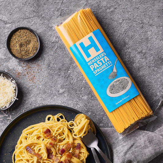 Spaghetti – ein echter Dauerbrenner der Pastaküche. Und HENSSLERS Spaghetti? Die legen noch einen drauf. Im praktischen 3er-Pack erhältlich, liefern sie dir die perfekte Basis für alles, was bei Pasta richtig rockt. Ob schnell nach Feierabend oder als Highlight beim Dinner – hier stimmt einfach alles.