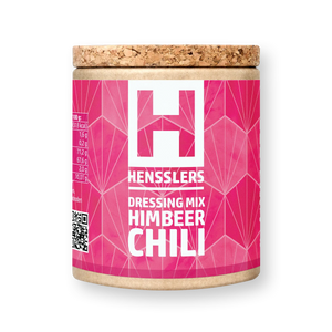 Hensslers Dressing Mix Himbeer Chili – die perfekte Mischung für außergewöhnliche Salatdressings mit fruchtig-scharfer Note! Die Kombination aus süßer Himbeere, feurigem Chili und feinen Gewürzen verleiht Salaten, Bowls und Dips ein spannendes Geschmacksprofil mit harmonischer Balance zwischen Süße und Schärfe.