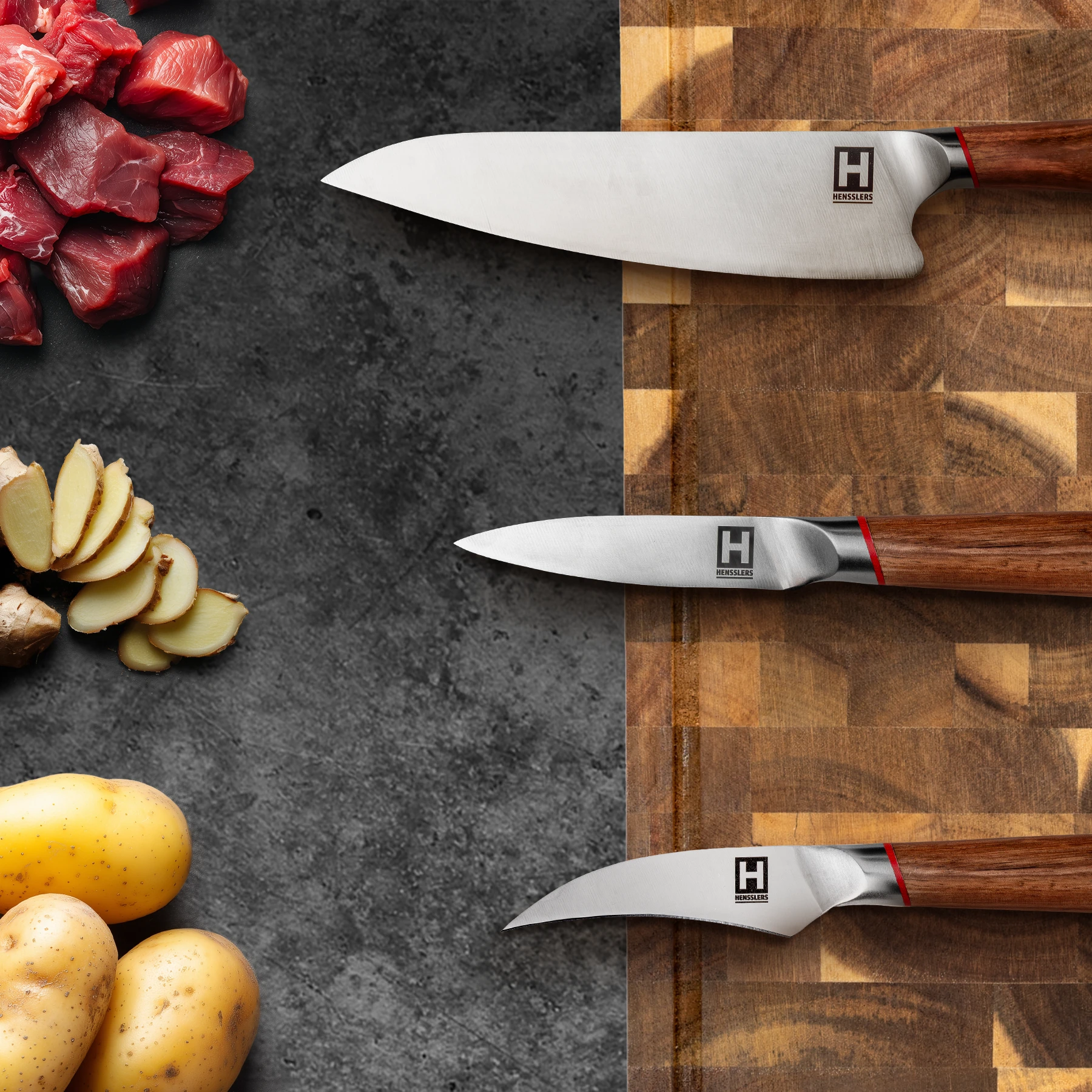 Japanisch inspiriertes Design trifft auf HENSSLERS-Qualität: robust, präzise und stilvoll – ein Messer, das in jeder Küche glänzt.